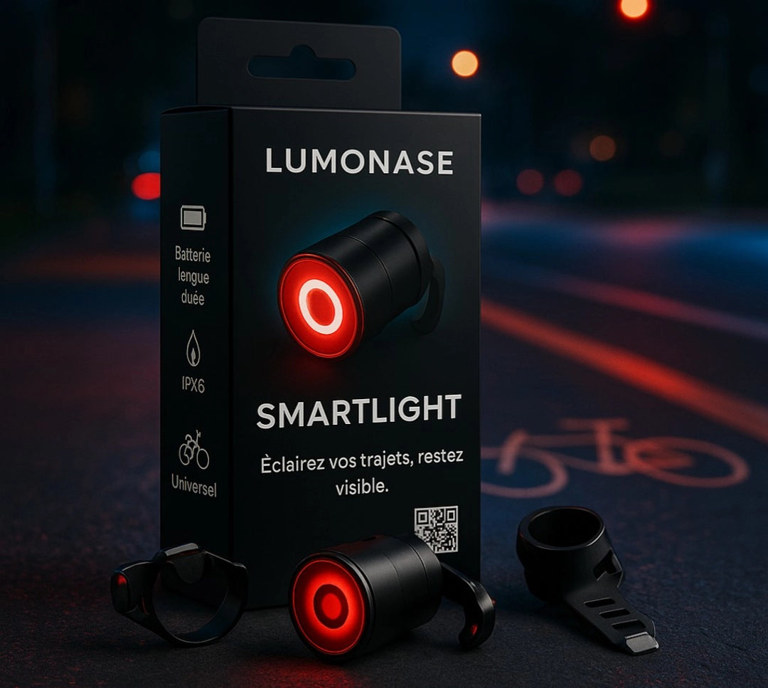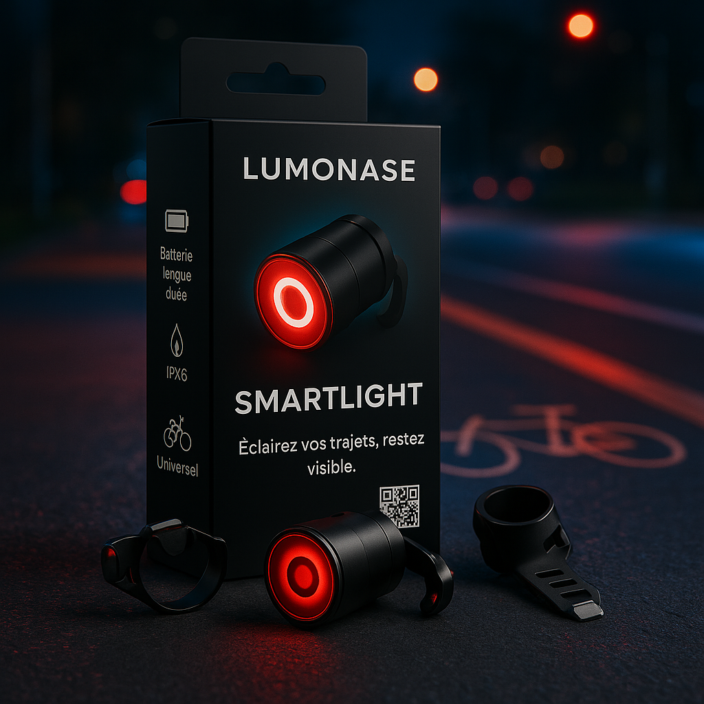 Ne laissez plus l'obscurité gâcher vos sorties. Le Lumonase Smartlight vous rend visible à 360°, pour une sécurité inégalée. Installation ultra-simple, roulez protégé !